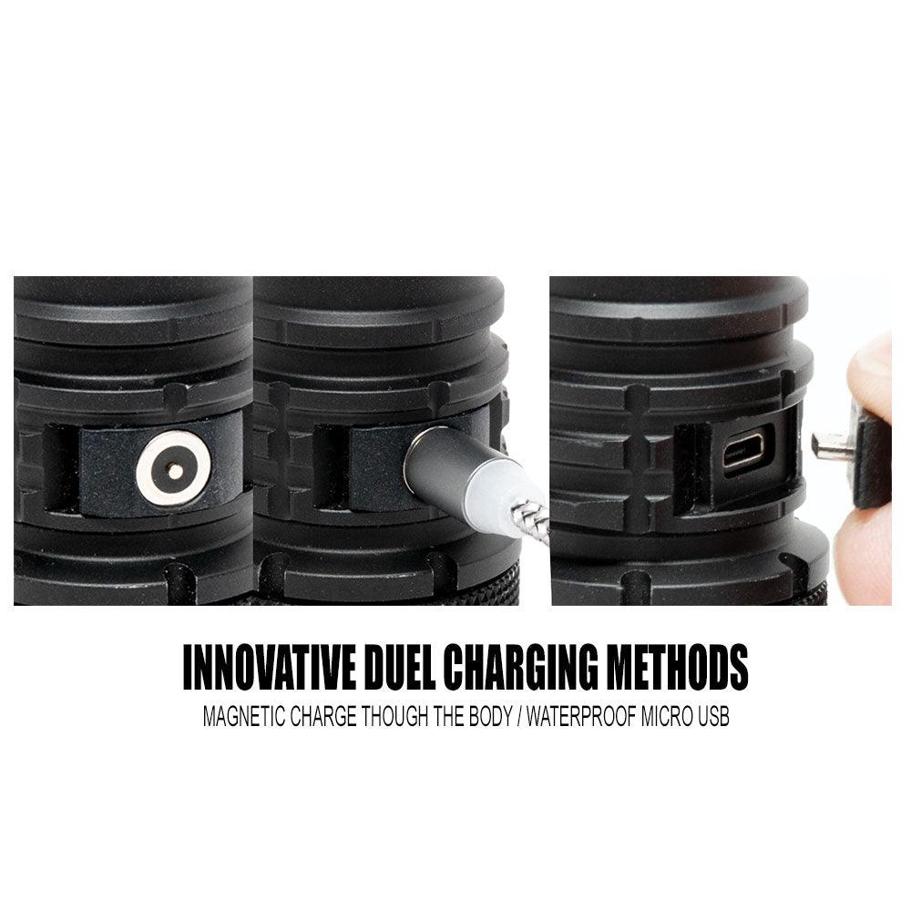 Fitted with aggressive knurling for a non-slip grip, the Warrior is easy to hold onto even with gloves on. This light’s compact size also makes it easy to carry around either in a flashlight holster or clipped to a duty belt - it's perfect for military professionals or anyone who needs to pack light. The Warrior G4-FL supports a dual charging system - use the magnetic charging port or use the waterproof micro-USB port - for easy charging back at basecamp or for standardized charging when magnetic charging isn’t an option.